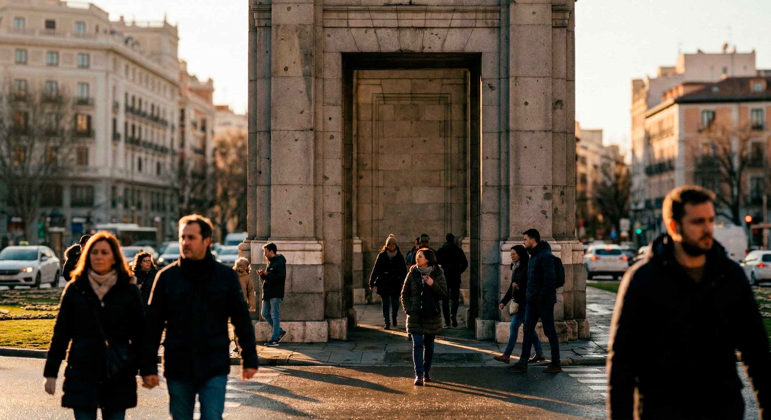 Sales del Botánico y en minutos llegas a la Puerta de Alcalá, ordenada construir por Carlos III. Es uno de esos puntos donde Madrid se siente “capital” de golpe: monumental, simétrica, fotogénica.